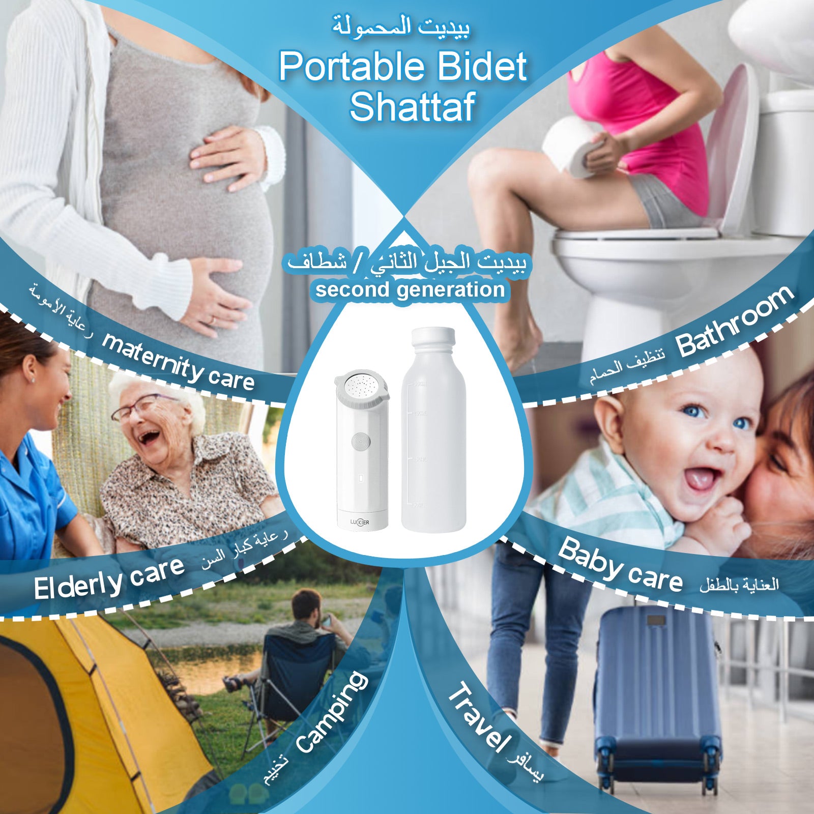 شطاف محمول للسفر من LUCKIER، بيديه شخصي محمول ومُطوَّر، رشاش شطاف كهربائي صغير، ضغط قابل للتعديل لتنظيف النظافة الشخصية/ما بعد الولادة
