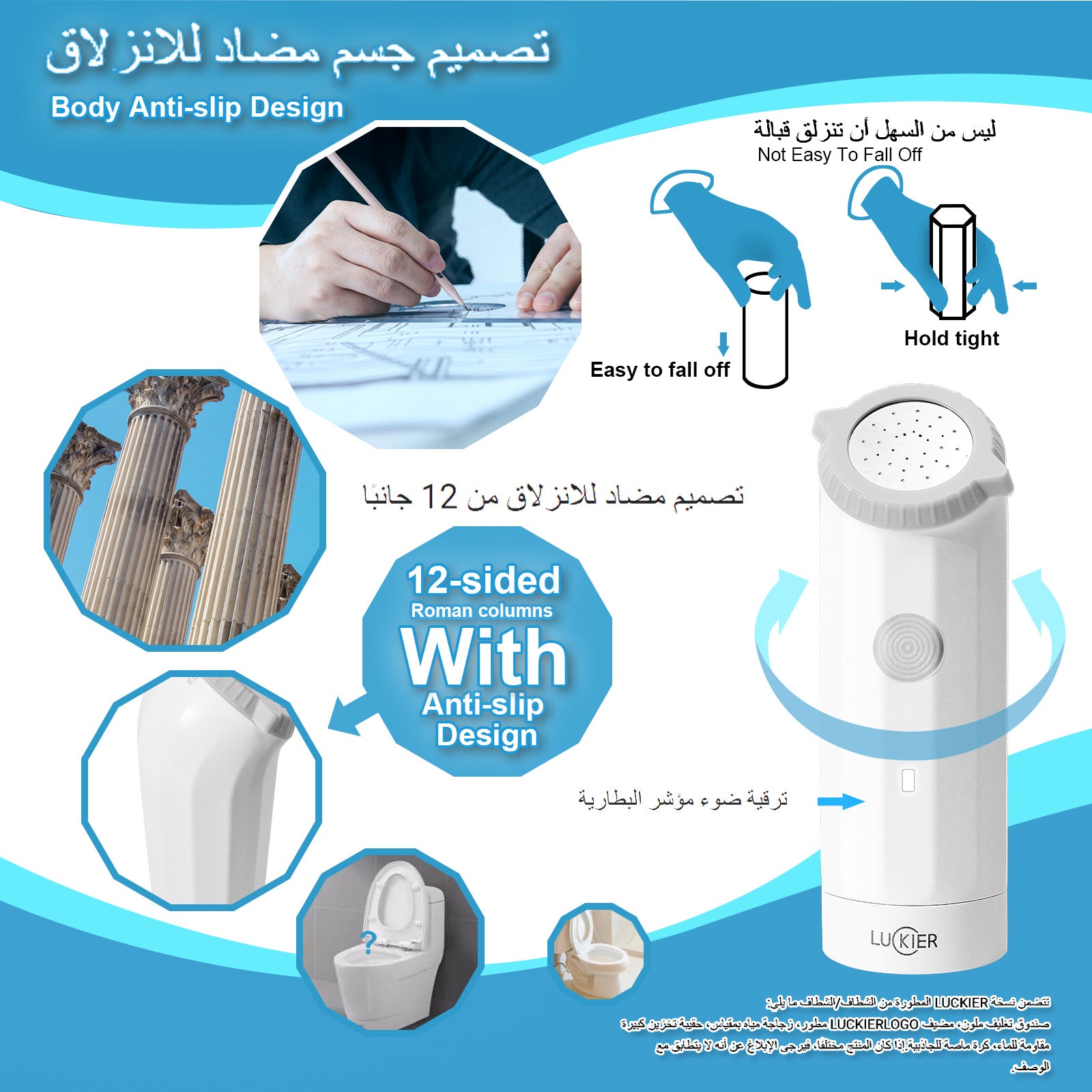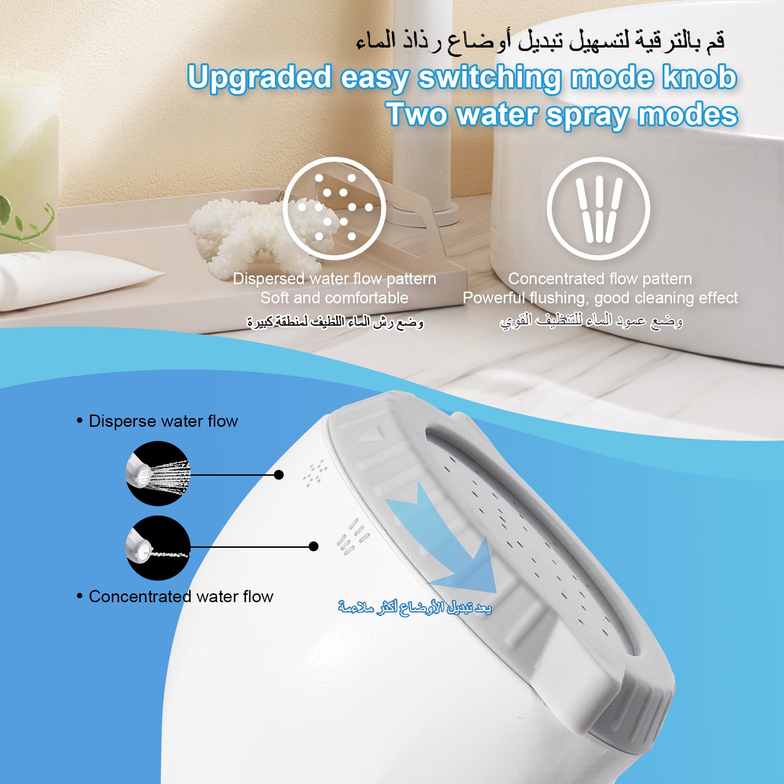 1. 【الجيل الثاني من شطاف بيديت المحمول المطور】: هذا المنتج مناسب لتنظيف النظافة الشخصية للنساء/العناية بالطفل/السفر/تنظيف النظافة الشخصية للتخييم/دش السفر الإسلامي وسيناريوهات أخرى. الإصدار النظيف الذي تمت ترقيته أكثر قوة وأسهل في الاستخدام. يمكنها بسهولة تبديل وضع تدفق المياه، ولها تصميم جسم مضاد للانزلاق، وتصميم رذاذ الماء الصامت، ومجهزة بحقيبة تخزين مقاومة للماء، وتأتي مع كرة ماصة للتنظيف في وضع مستقيم (يرجى إزالتها عند الوقوف رأسًا على عقب). يمكن حمل بيديت LUCKIER No.1 الكهربائي المحمول والمطوّر من الجيل الثاني في الجيب أو حقيبة الظهر.