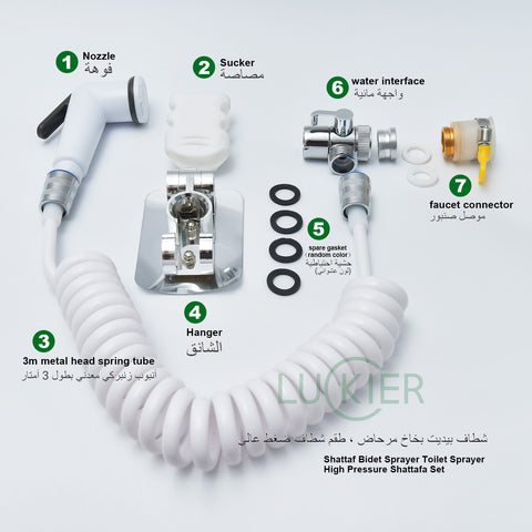 بخاخ مرحاض من لاكيير شطاف، طقم شطافة عالي الضغط مع خرطوم 3 متر ومحول عالمي للصنابير بقطر 13-24 مم. مناسبة للمنزل/الفندق/الحمام